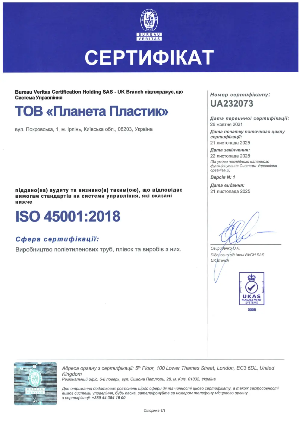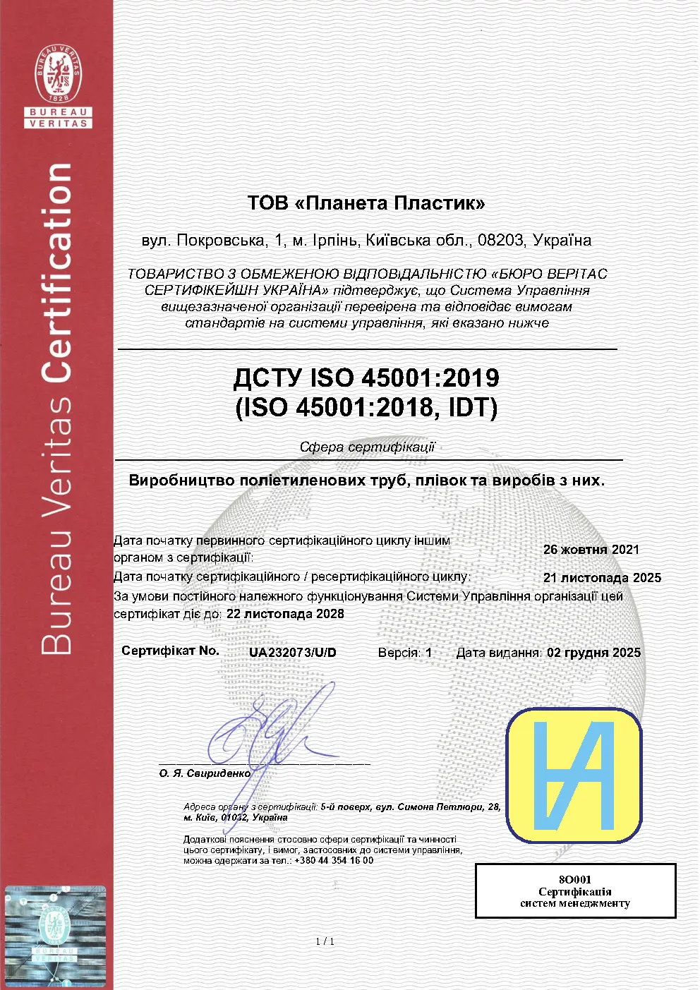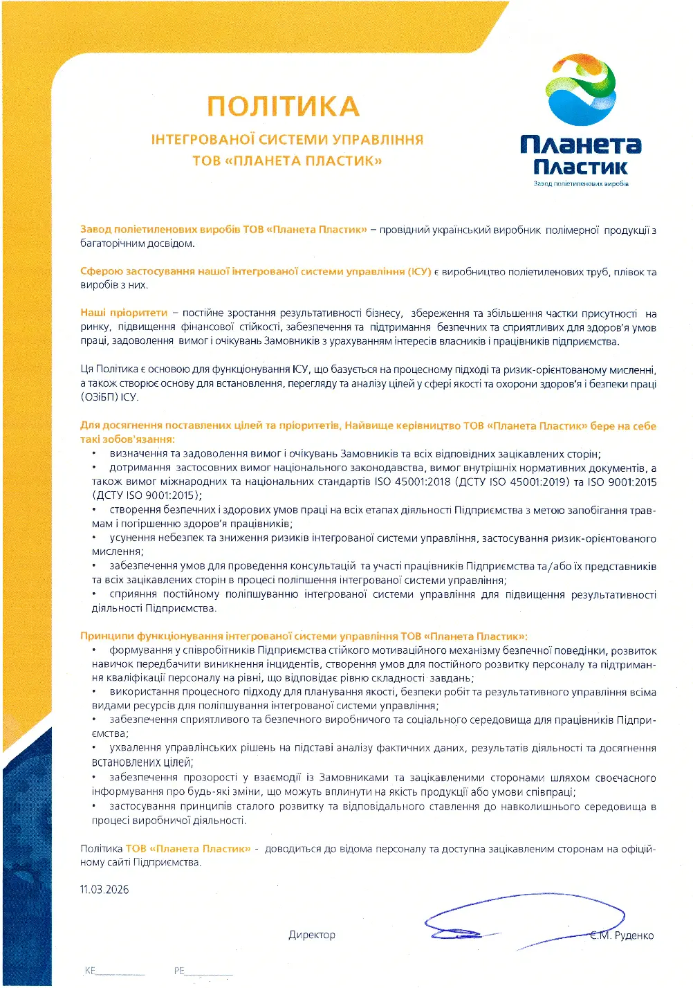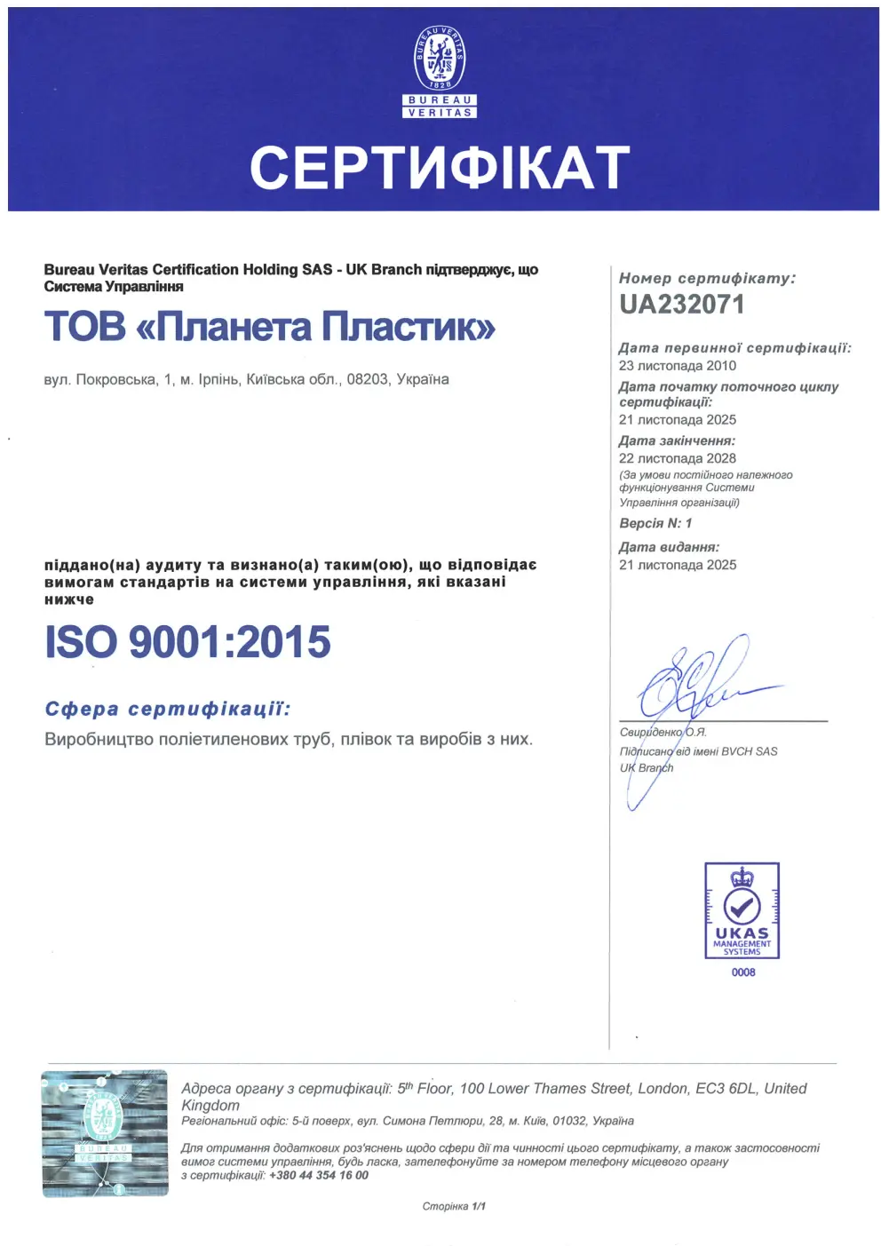 Вся продукція виробництва ТОВ «Планета Пластик» успішно пройшла сертифікацію за схемою згідно з ISO 9001:2015